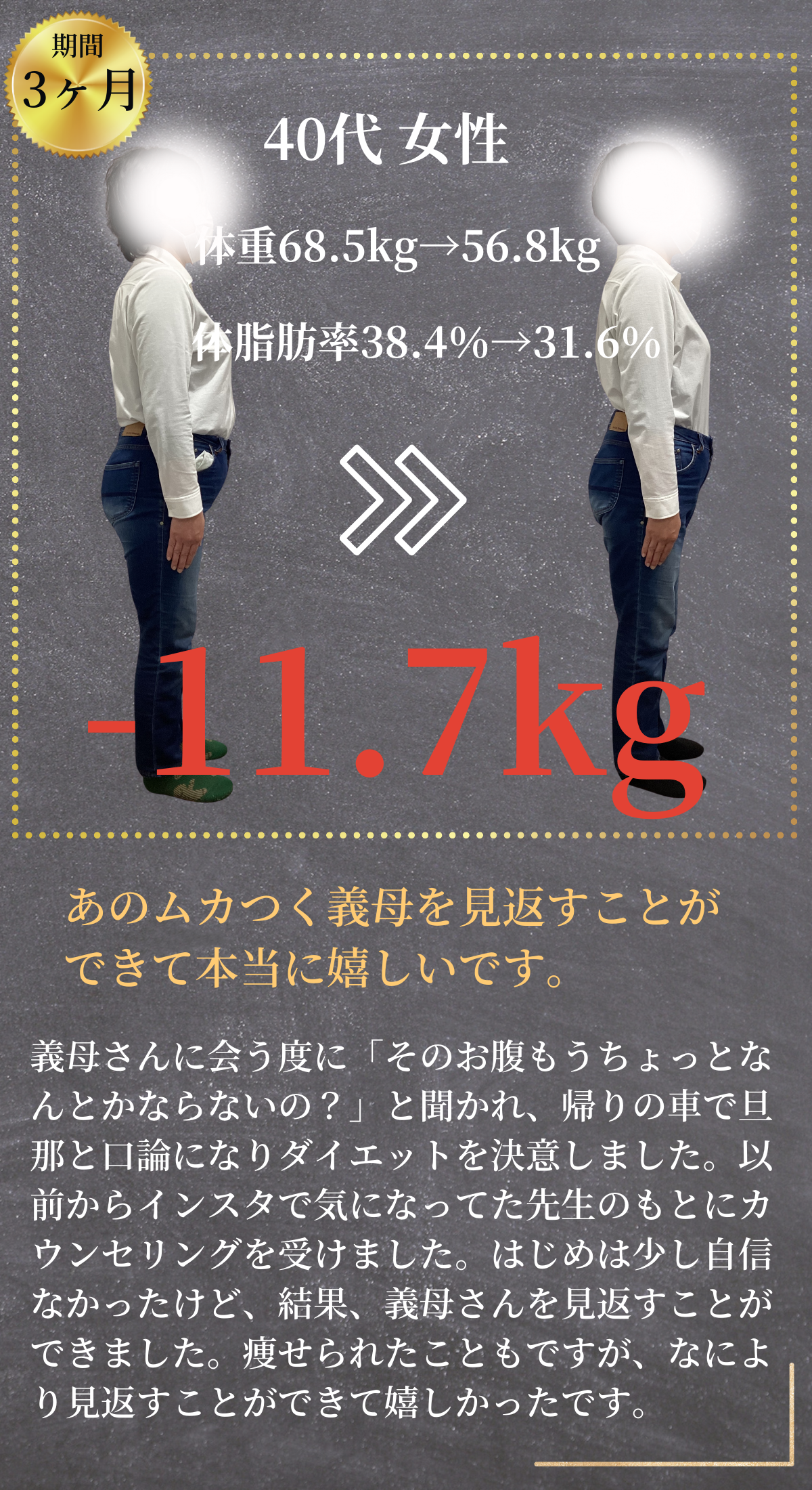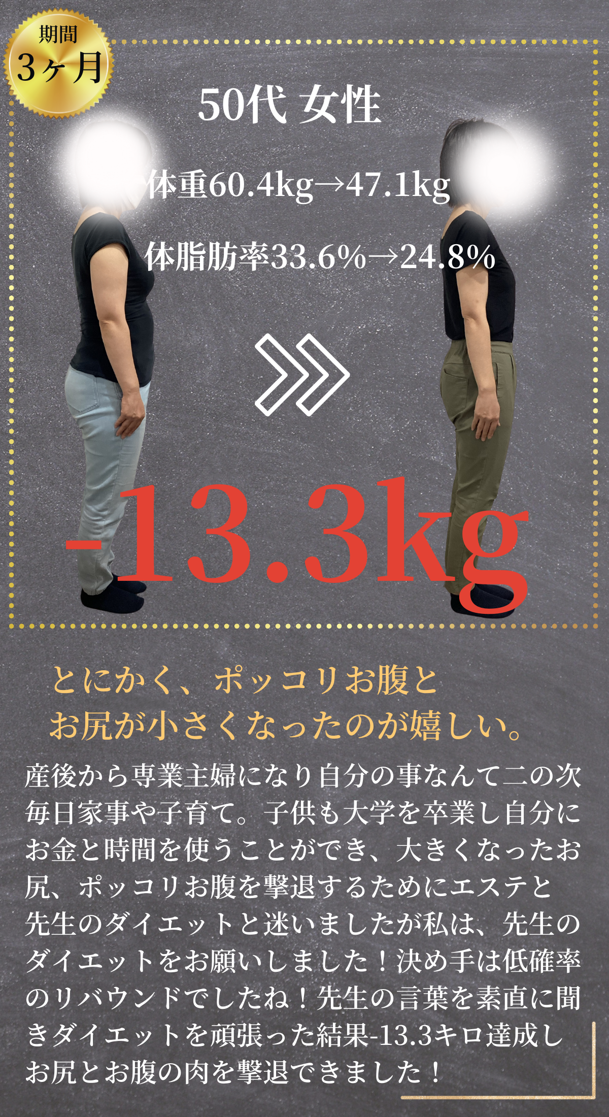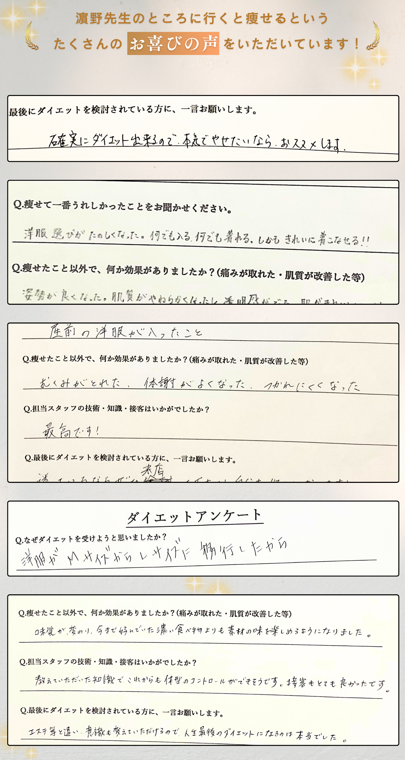 そんな声をいただきながら、数百名の方が"人生最後のダイエット"を成功されています。